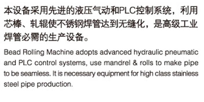 內(nèi)焊縫整平機組成由內(nèi)外焊縫整平機架、液壓氣動系統(tǒng)、帶PLC控制的全自動電液氣控制系統(tǒng)、還包括模具和軋制液循環(huán)設備。